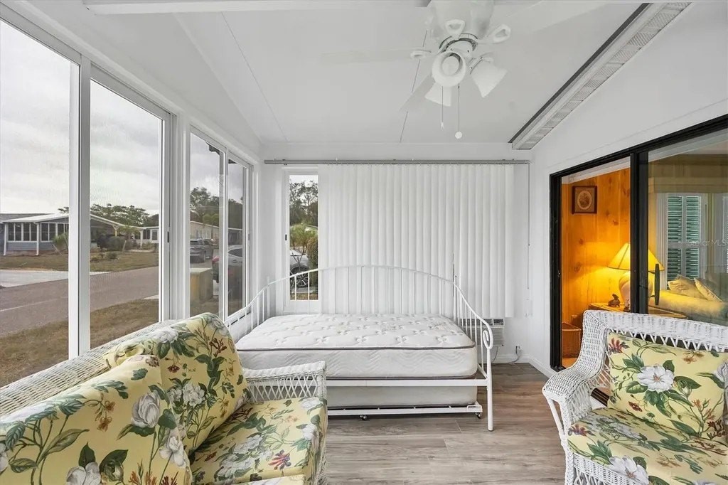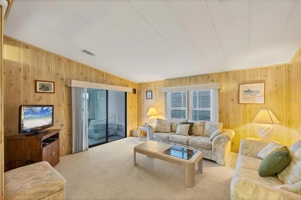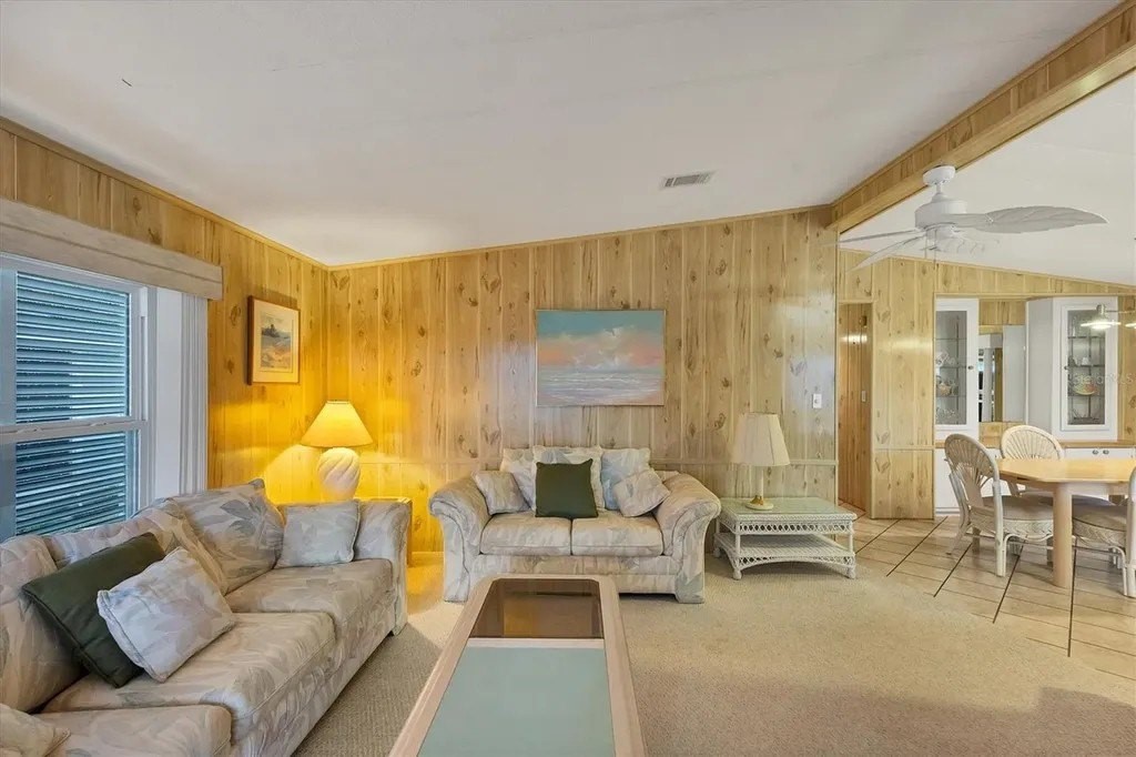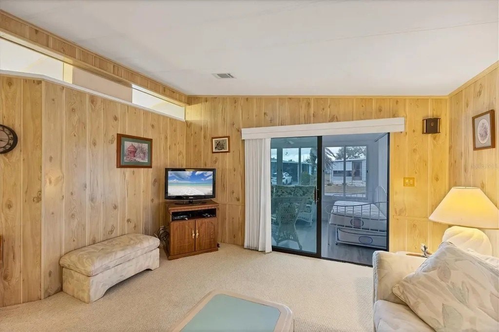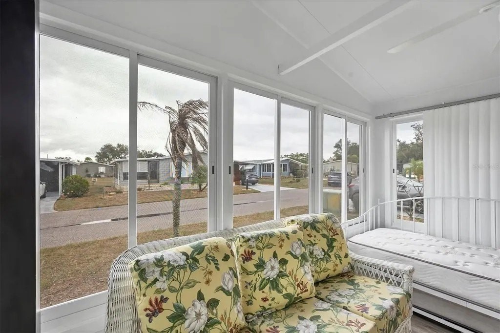 Located on a quiet cul-de-sac street and located in an X Flood Zone! This highly sought-after gated community of Tangerine Woods, is an active and friendly, 55 and over community, and you own the land your home is located on. For your leisurely pleasure, this community provides you with a large heated pool and clubhouse, an exercise room and library, tennis and pickleball courts, walking trails, shuffleboard, and so much more! Turnkey furnished with all the comforts of home, this 2-bedroom, 2-bathroom home had a New A/C in 2020, Lanai has newer vinyl plank flooring, windows and door, is light & bright and the perfect place to sit and enjoy your morning coffee. The kitchen, complete with a pantry and breakfast bar, is just off the dinette area that offers a built-in cabinet. The large great room has sliders that take you to your lanai for an extended entertaining area. The master bedroom has a walk-in closet and ensuite bathroom. Enjoy sitting in your screened porch off the carport and welcome the outdoors. This home's yard is a green-belt area that boasts tranquility and privacy. The low monthly HOA payment of $226 includes cable TV, internet and grass cutting, and Tangerine Woods is pet friendly! This community is close to Historic Dearborn St., which provides casual dining, evening entertainment, locally owned shops and a Farmers Market on Thursdays. The local beaches are just 4 miles away, as well as many local golf courses, and world class fishing! Make your appointment today to see this wonderfully located home!